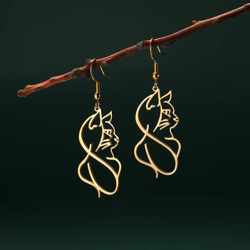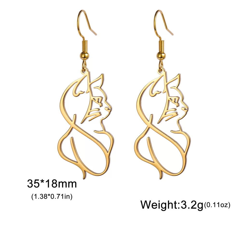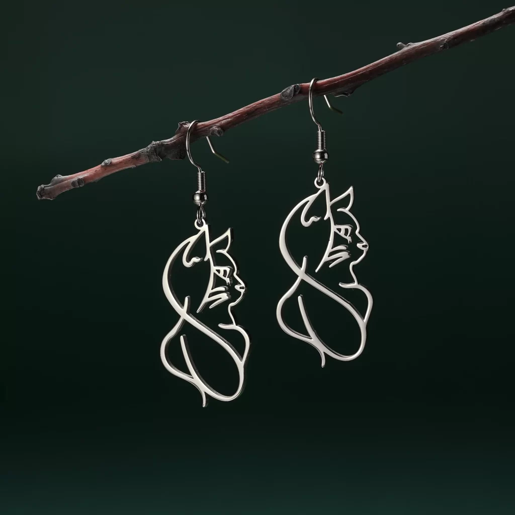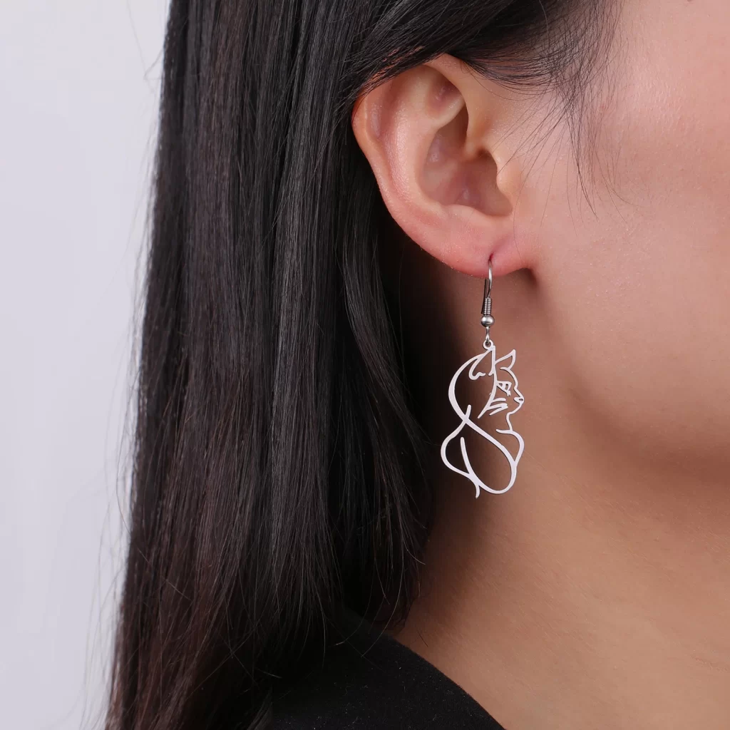 Objevte náušnice s kočkou, které spojují jedinečný design s odolným materiálem. Už žádné nepříjemné alergie nebo rychle ztrácející se barva! Tyto ocelové náušnice jsou nejen krásné, ale i praktické – nečernají a neoxidují. Přidejte svému outfitu jemný, ale luxusní nádech, který nikdy nevyjde z módy.